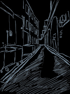 We were just about to make these images background art for the storyboards, and start adding in the action layers, when Simon and I decided to go down to the AV suite to talk to Matt Burton about the problems we may encounter filming in that area. At first we were just talking about the practicalities of having a chase scene and the potential need to use a crash mat. Which then led us to talking about location, where all of the problems started to arise. As expected we would need to contact the police to inform them that we would be filming in that area at the said time, incase any members of public were concerned that it was real. To overcome this problem further we could make it clear that we were part of a film by wearing crew jackets, but this has it's downside as the area we wished to film in is a busy commuting area and quite rough in places, and it may be a bad idea to draw too much attention to us, especially with such expensive equipment. We then found out that all of the areas we had visited (and took site photographs of) were actually private property, which would mean that we needed to get permission from the landowners to film there, and then from all of the businesses which use the alleyways, which may not be processed in time. So Matt's first suggestion was to look at other similar areas that we could film.